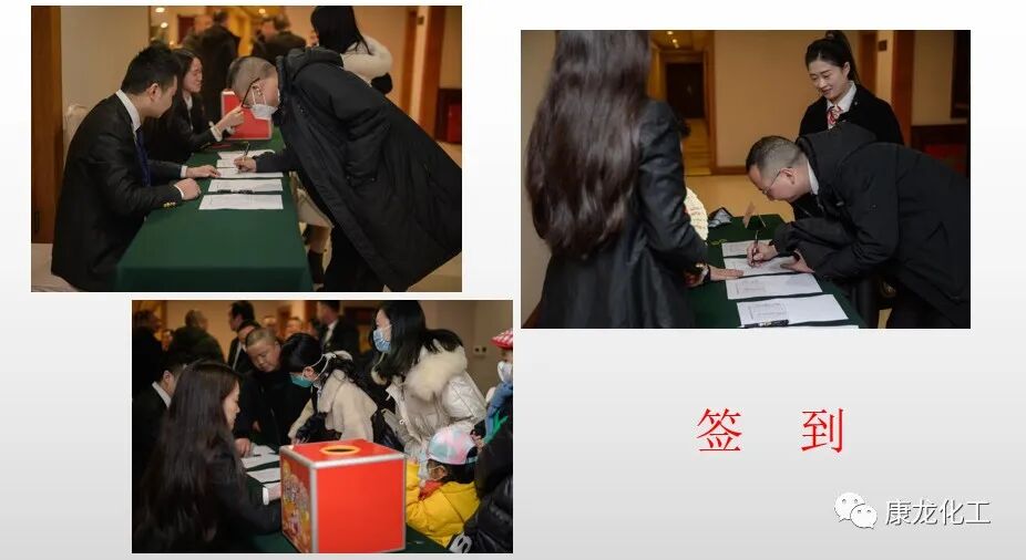 2023年1月13日,康龙化工年终总结暨表彰大会在什邡市宏达金桥酒店隆重召开,所有参会人员准时签到,并领取抽奖劵。